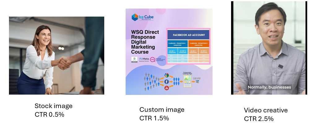 A stock photo ad can be made in minutes at minimal cost, while a custom-designed image ad involves ideation, design time, and paid software tools. Professional designers in Singapore typically charge $100–$1000 per ad image. Before signing up with an agency, find out what type of ad creatives are included. If they only provide basic designs, you might need to outsource creative work separately — adding to your total cost.