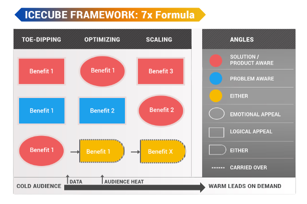 | Quantity of ads | From 5 to 11 different ads concepts, depending on whether we hit benchmark | 2-3 ads with little variation in concept |